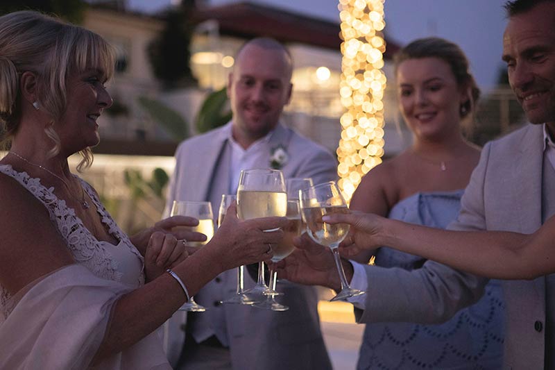For their wedding dinner Sharon and Rod chose a magnificent terrace located on the top floor of a 5-star hotel in Taormina historic centre. A Michelin starred chef prepared amazing traditional Sicilian dishes for the bride and groom and their guests. They all enjoyed a wonderful wedding meal under a starry sky overlooking a breathtaking view over wonderful Taormina.