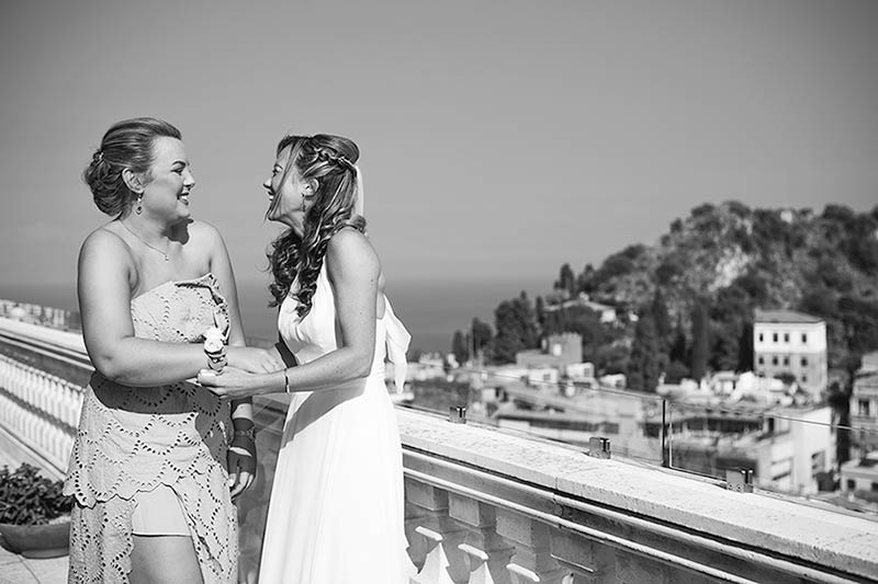 Sharon and Rod chose a hotel in downtown Taormina to get ready. The atmosphere was relaxed. Rod decided to spend the hours before the wedding ceremony in a beautiful swimming pool with a fantastic view over Taormina.