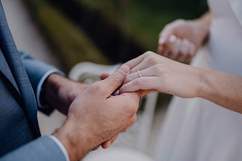 When they were ready, they left the room together and they walked along the rose garden for a romantic ceremony overlooking Canal Grande.