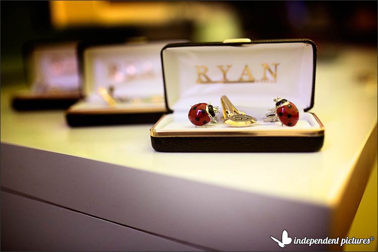 A touch of irony and colour for Ryan’s lady bug cuff links, a real lucky charm!