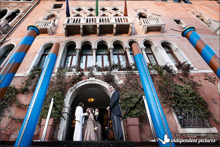 Gondola traditional boat, lead them to their wedding reception venue in Venice: a wonderful noble palace built back in 1400. It is now converted in a luxury hotel.
